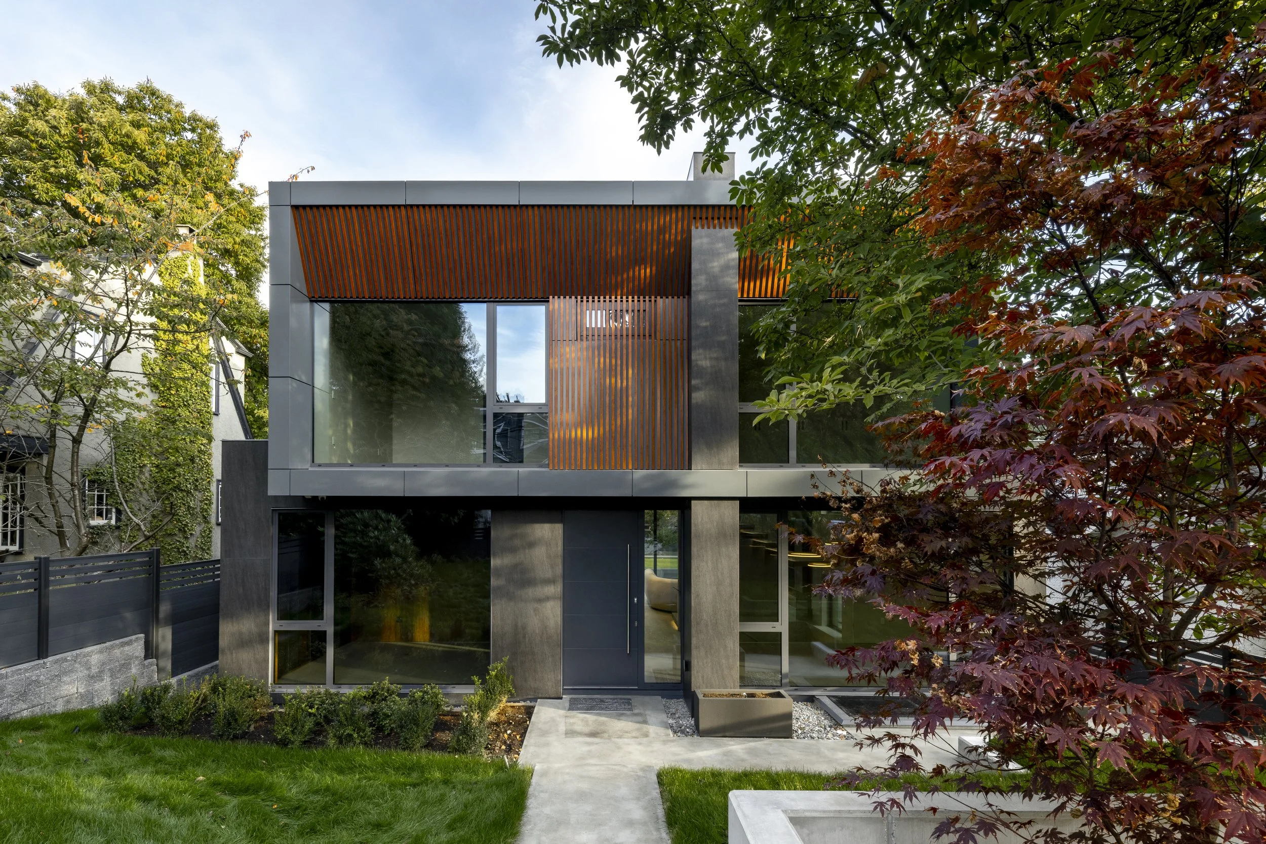 Situated in the heart of West Point Grey, a family-friendly neighbourhood known for its proximity to Vancouver’s beaches and green spaces and a strong community feel. The exterior blends clean modern lines with durable, low-maintenance materials. Inside, warm wood finishes and soft lighting guide you past the den and dining room to a striking floating staircase with glass panels. Beyond, the kitchen and living area open up with natural stone, wood accents, and sleek high-gloss details. The bathrooms are equally refined, wrapped in floor-to-ceiling tile with thoughtfully chosen fixtures throughout.